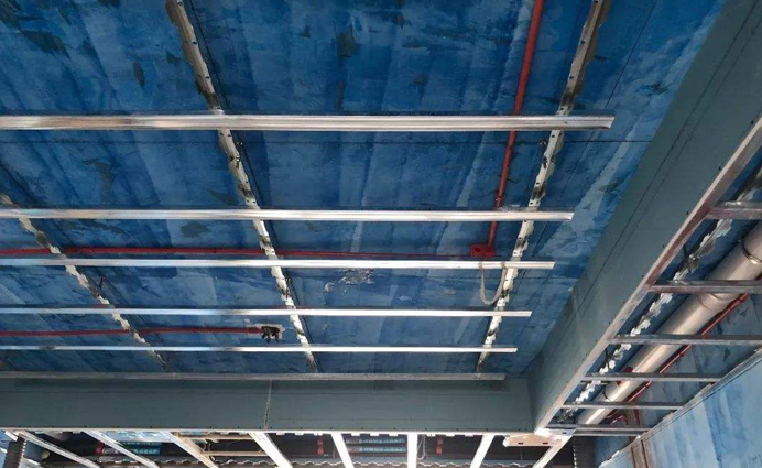 1、顶棚定位弹线、打眼定位弹线,确定龙骨分档及吊筋点位(吊筋直径8mm;注意避开电线管等);
